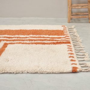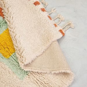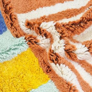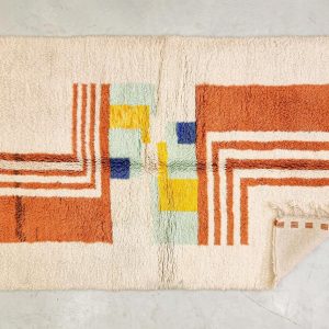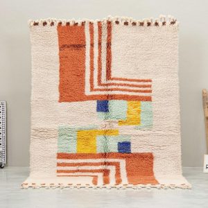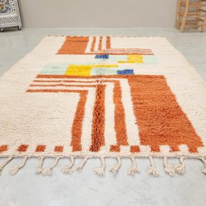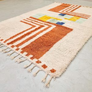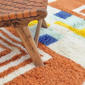 - Design: Featuring vibrant geometric patterns in earthy orange, soothing pastels, and bold accents, this rug beautifully combines traditional Berber motifs with a modern aesthetic.