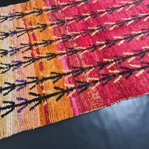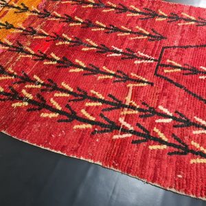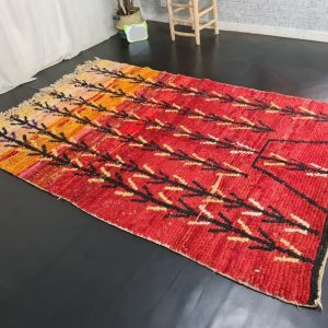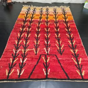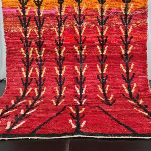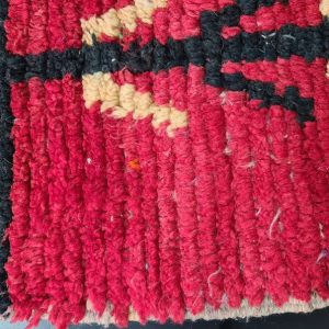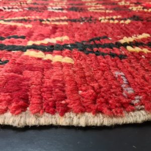 Authentic red Handmade Moroccan Berber Wool Rug. This rug was handwoven in the Middle Atlas Mountains by local Berber women weavers using local natural sheep wool and traditional tools.